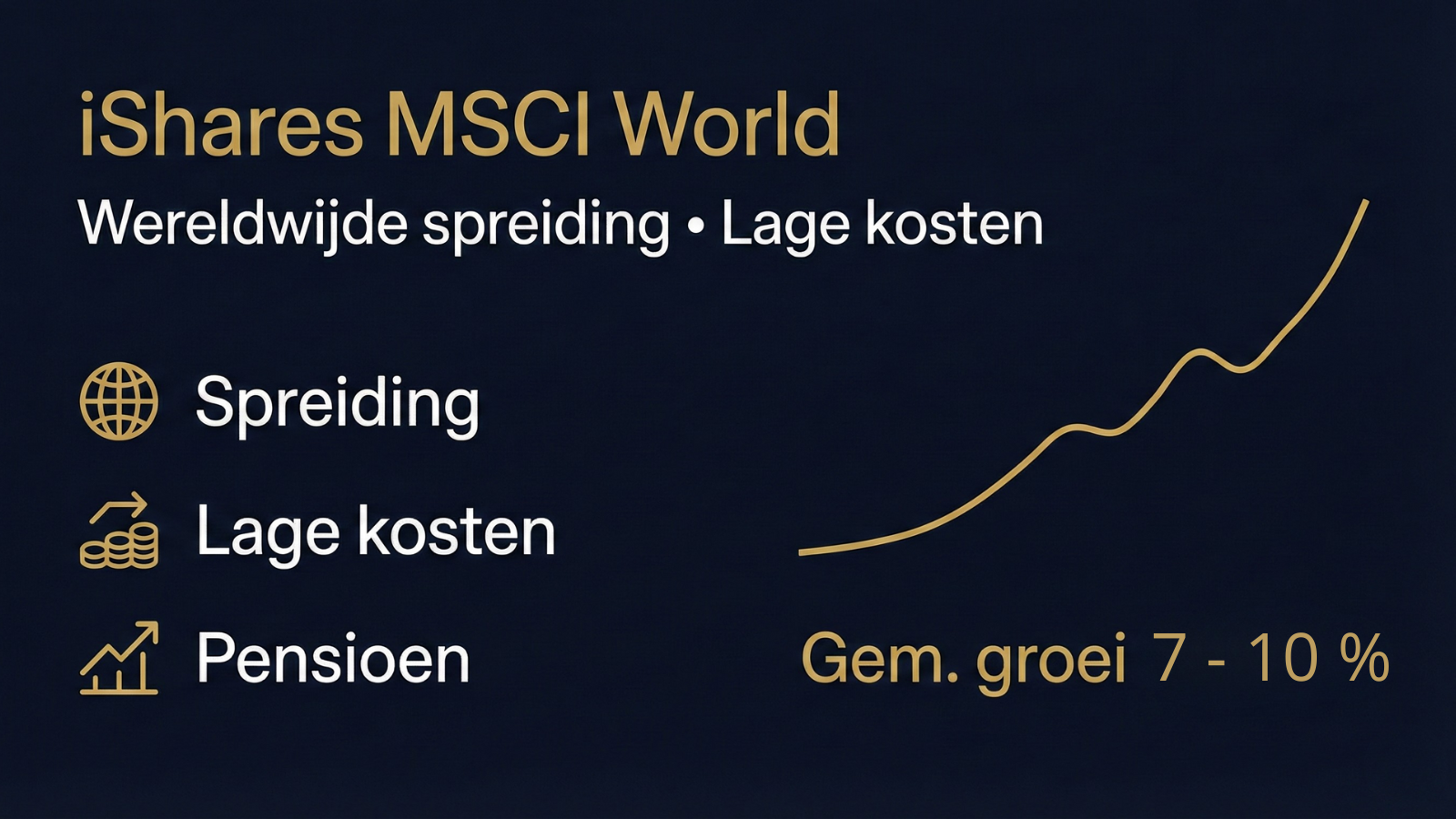 Daarnaast gebruiken wij wereldwijde indexfondsen (zoals iShares MSCI World). Deze ondersteunen een duurzame lange-termijn vermogensopbouw door brede spreiding, lage kosten en bewezen stabiliteit.